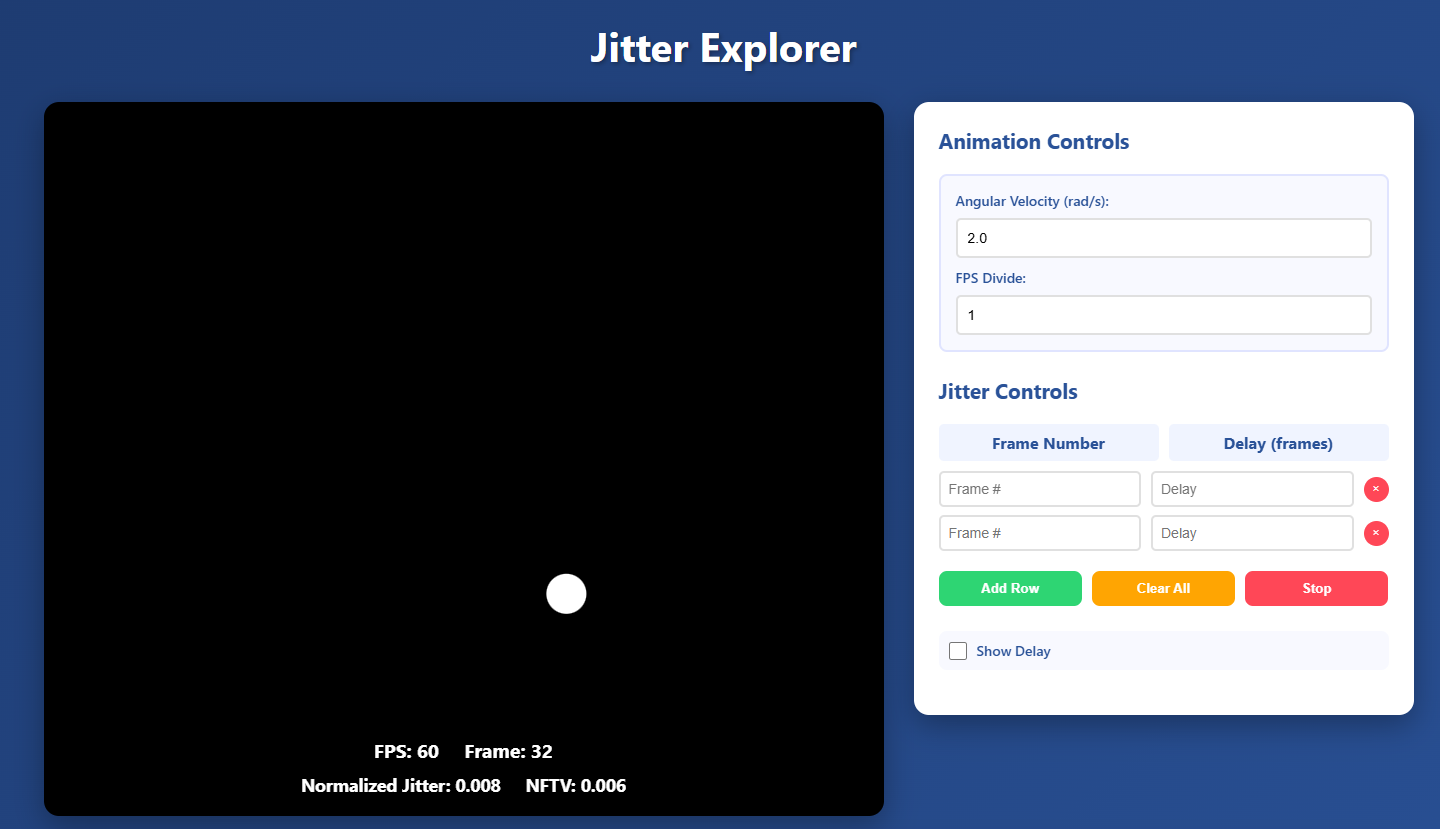 Test for minimal noticeable display jitter for a moving object, with various perceptual metrics.